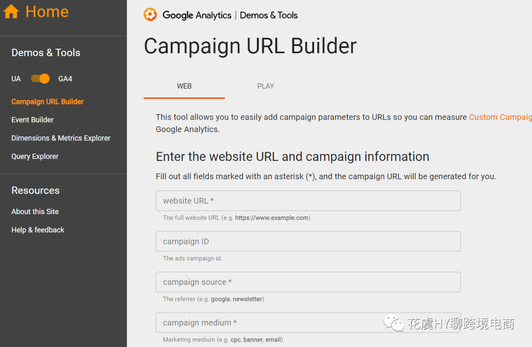 谷歌官方工具链接:https://ga-dev-tools.web.app/ga4/campaign-url-builder/