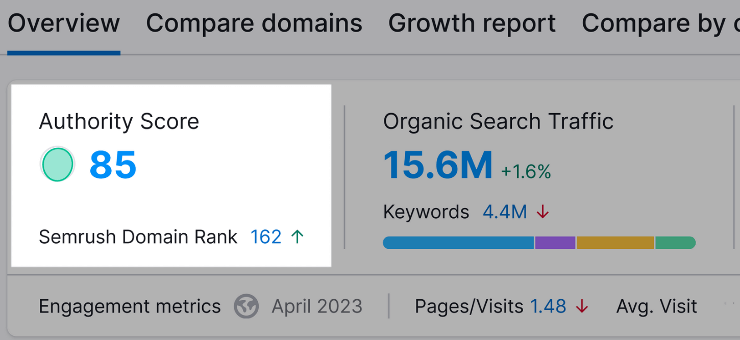 第六个要说的就是网站权重(Website Authority)。顾名思义,这个 SEO 指标在某种程度上就表明你的内容在搜索结果页上的排名情况。