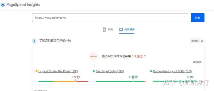 还是以anker为例,通过PageSpeed Insights测出来的结果如下图: