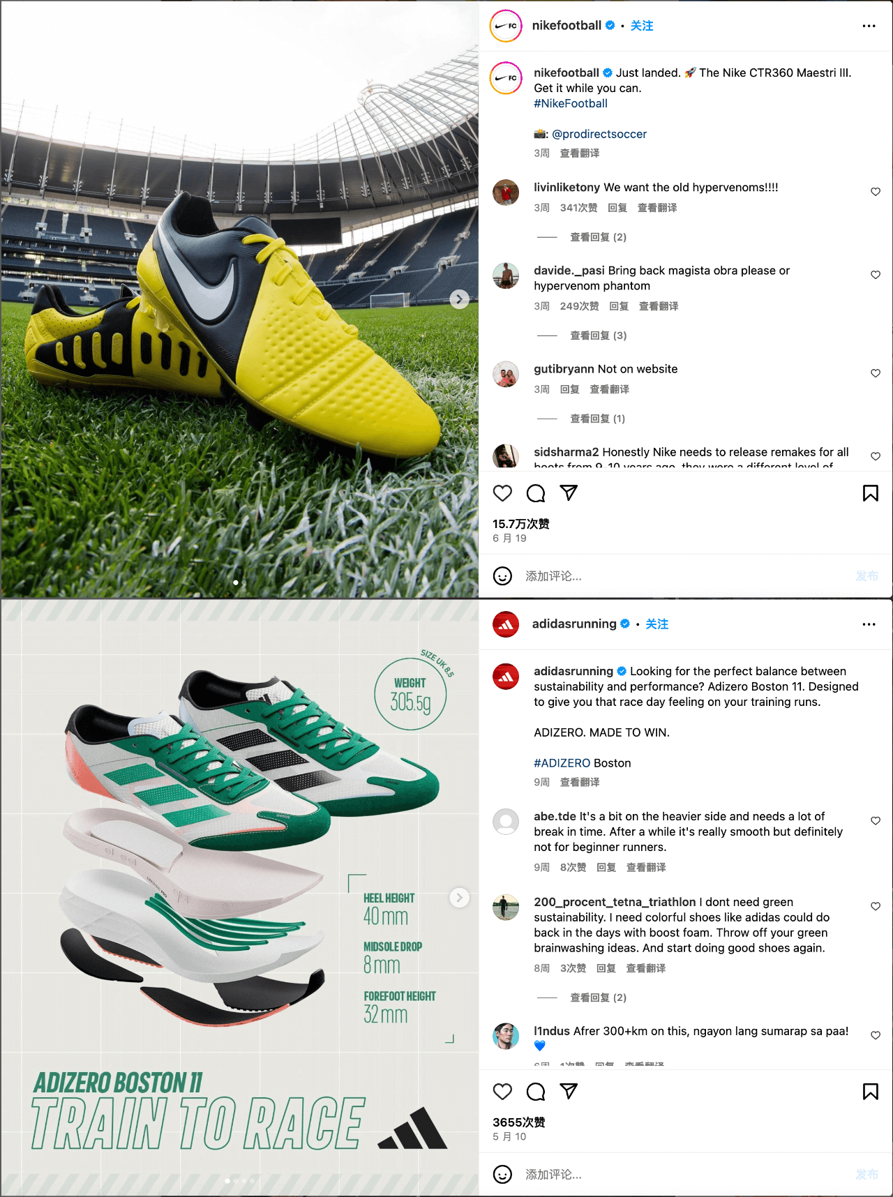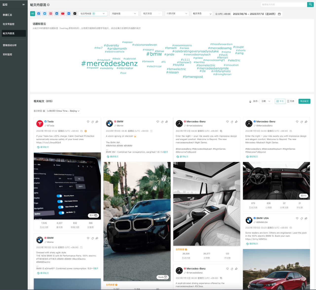 通过“监控”模块的帖文内容流页面,可随时查看指定时间周期内的竞品帖文发表内容,出海品牌可以根据竞品的内容来决定和调整自身品牌社媒内容的差异化策略: