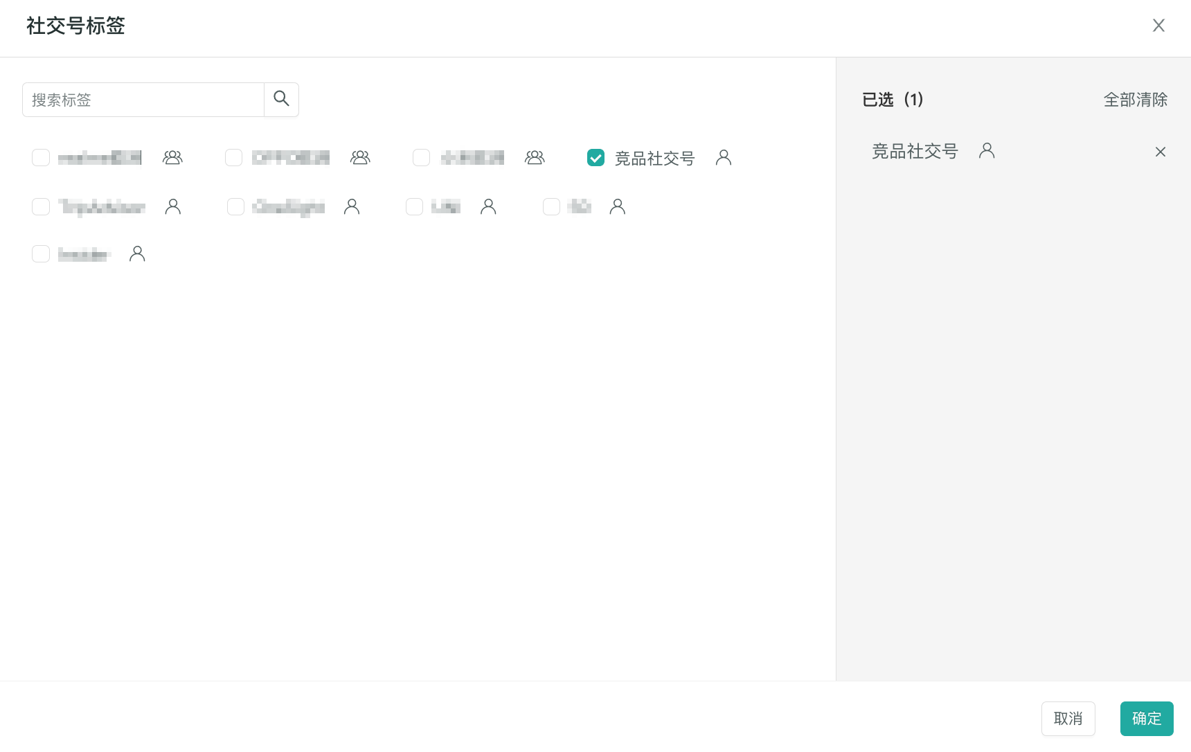 差异化是相对于竞争对手及竞品而言的,因此对竞品动态的实时掌握必不可少。在OneSight营销云平台,可以将需要重点关注的竞品社媒主页添加“竞品社交号”标签,便于今后快速查找和管理: