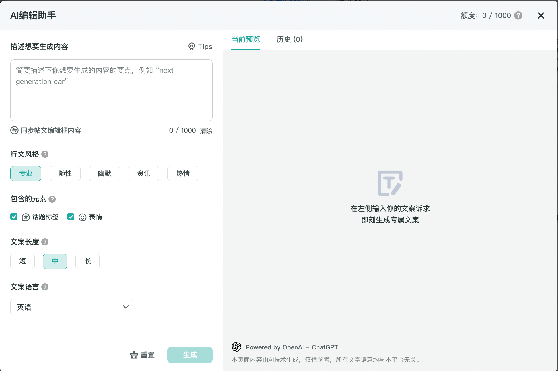 AIGC作为继UGC、PGC之后利用AI技术自动生成内容的新型内容创作方式,给出海内容营销带来了多个方面的变化,出海品牌不妨尝试OneSight营销云的“AI编辑助手”去生成差异化的帖文内容,看看最新的前沿技术能够给海外社媒运营带来哪些改变: