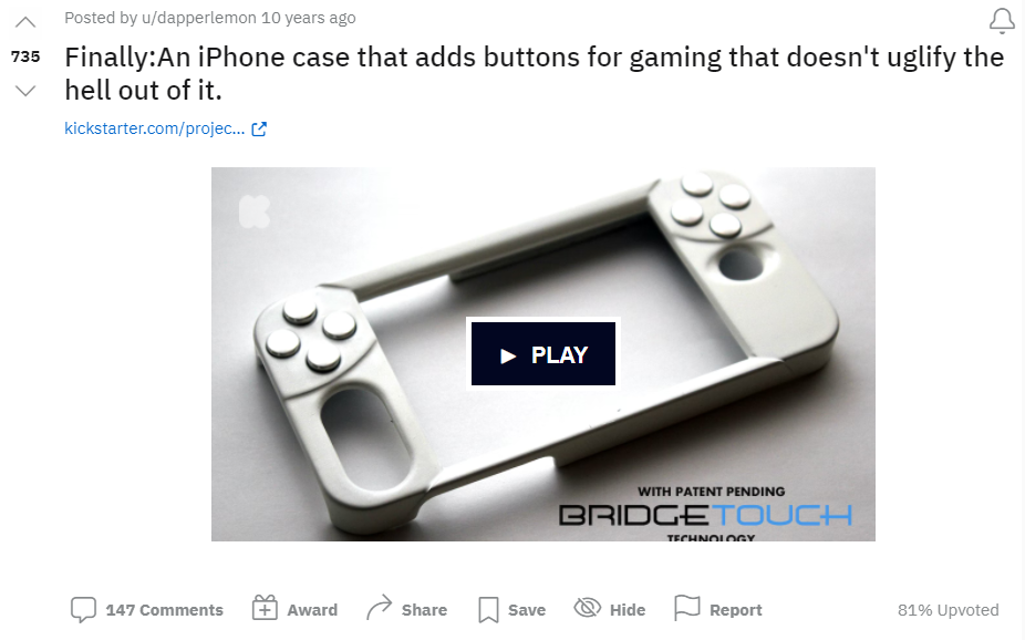 举个例子:Finally: An iPhone case that adds buttons for gaming that doesn’t uglify the hell out of it.