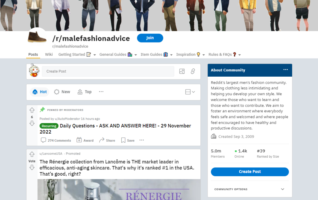 发表这类种草贴除了在该产品所在的行业社区,如游戏社区、科技爱好者社区、众筹社区等,还可以去专门的种草话题社区,在种草社区,你可以尽情的发布产品种草,比如/r/malefashionadvice(男性时尚建议)是最大的男性在线社区之一,用户可以在这个社区分享时尚技巧和穿搭等内容。