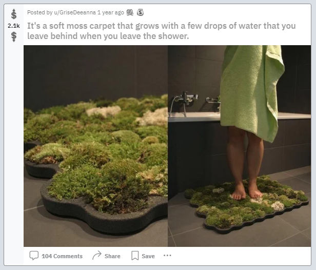 It’s a soft moss carpet that grows with a few drops of water that you leave behind when you leave the shower.