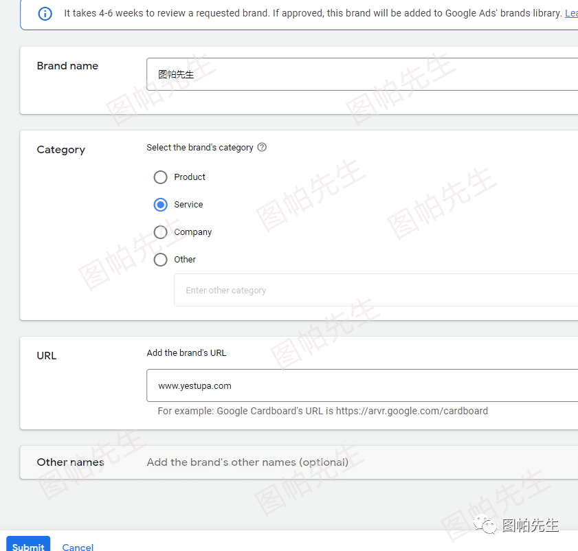 注意:即使品牌处于待定状态,它仍可在广告系列中使用,但其覆盖范围可能会受到限制。品牌通过审核后,将被添加到谷歌的品牌库中,之后所有广告商都可以选择了。