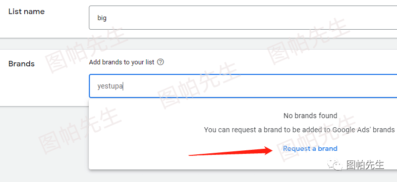 如果搜不到想要添加的品牌词,就要请求将品牌添加到品牌列表中