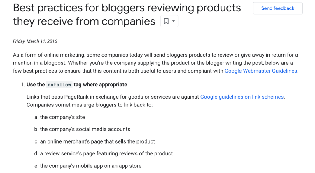 如果你对目标网站不是很信任,但是又觉得对方的某个内容质量很好,很想提及一下,给受众做一点信息延展。那基本设置的便是这种不传递网站权重的“Nofollow”出站链接标签。同样,谷歌的要求也是不以获利为目的。