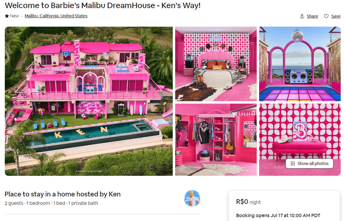 这一营销活动由Barbie和Airbnb合作推出,给所有 Barbie 的粉丝塑造一种独特的视觉享受和独一无二的Barbie 生活体验。