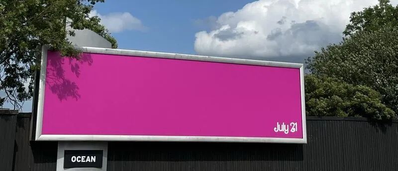 因此,Barbie的营销团队非常巧妙地运用了它的品牌视觉锤,仅仅用了一块粉色+日期的广告牌,就让大家都知道这是Barbie的电影即将上映了。