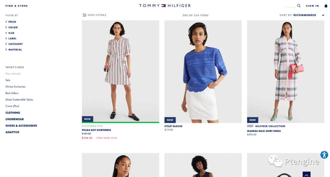 - 消费者能够通过过滤”NEW”或者“HILFIGER COLLECTION”的提示查看不同分类