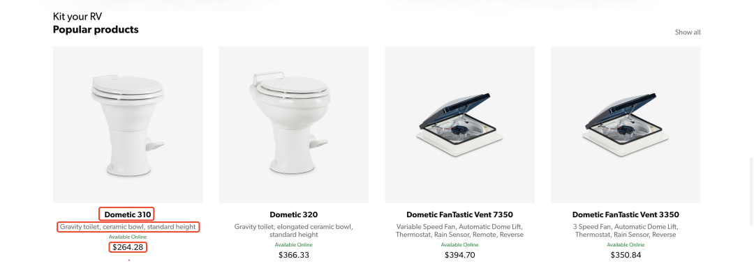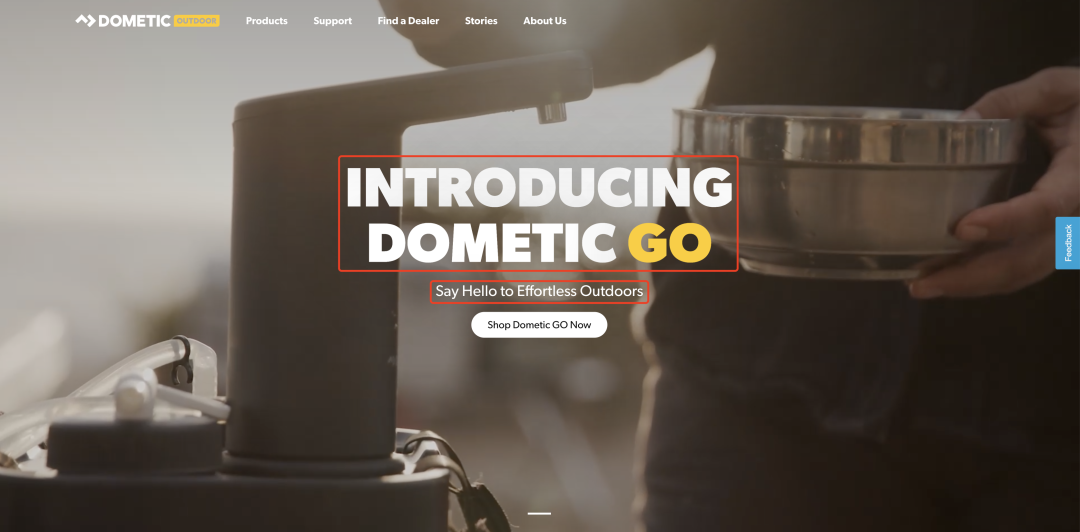 Dometic就在独立站这个页面上使用了86px的标题和24px的正文,很好的产生了对比的效果。