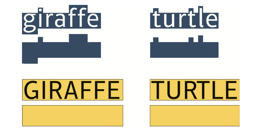 所以当一个单词以全大写的形式出现的时候,它的形状会从平常我们熟知的状态变为并不熟悉的矩形状,为此用户需要逐个字母的识别,从而增加阅读时间。