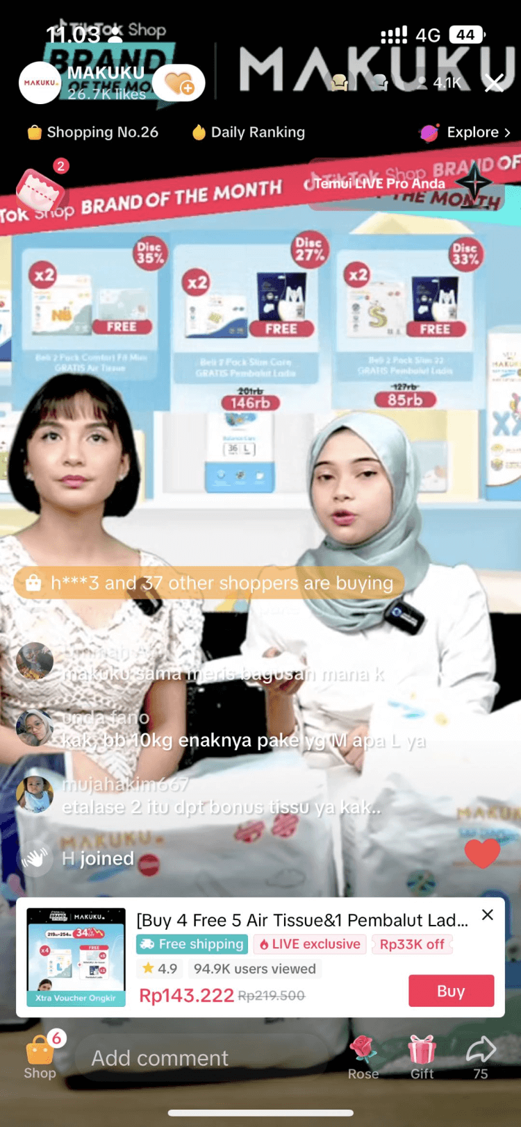 在Lucky借助TikTok进行品牌内容营销的同时,MAKUKU电商负责人Joseph也在大踏步地进行着TikTok直播电商的实践。