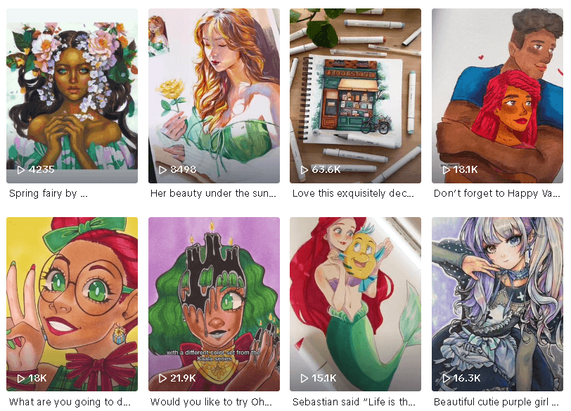 TikTok 是一个以创意和趣味为主的平台,用户对于创意和艺术性强的内容大多没有抵抗力。作为一个绘画用品品牌,Ohuhu 在 TikTok 上的营销并没有表现出明显的销售目的,更多是通过分享绘画技巧、创作过程、展示 Ohuhu 的产品等,为用户输出有价值的内容,帮助他们提升创作能力。