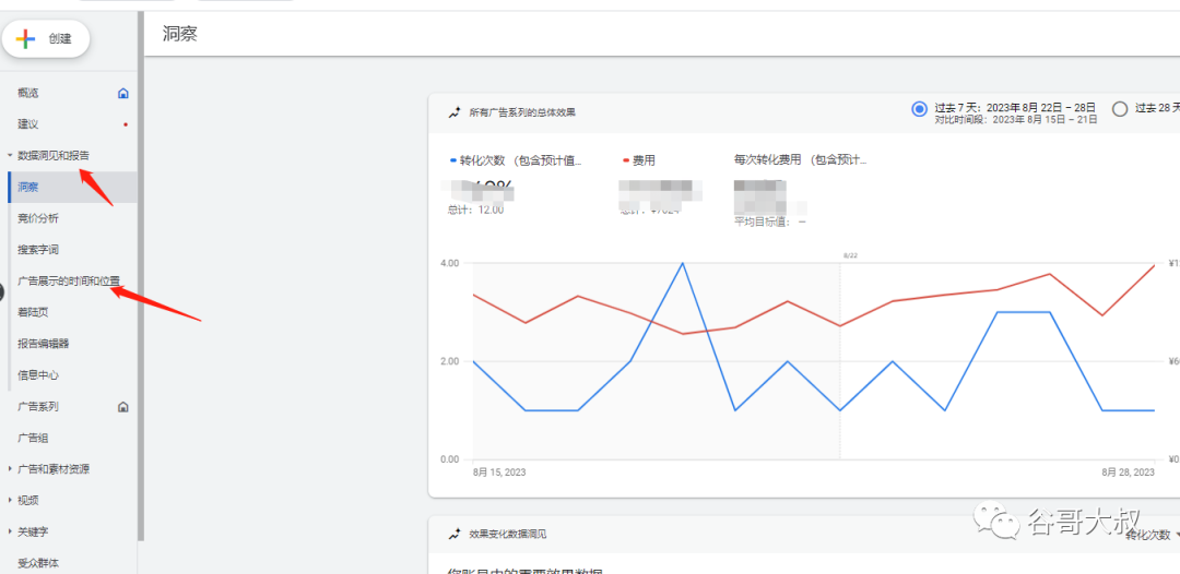 去insight 栏目里面看我们的国家花费,分析主要是哪些国家花费了钱但是没有出询盘,是否需要去做相应的调整。