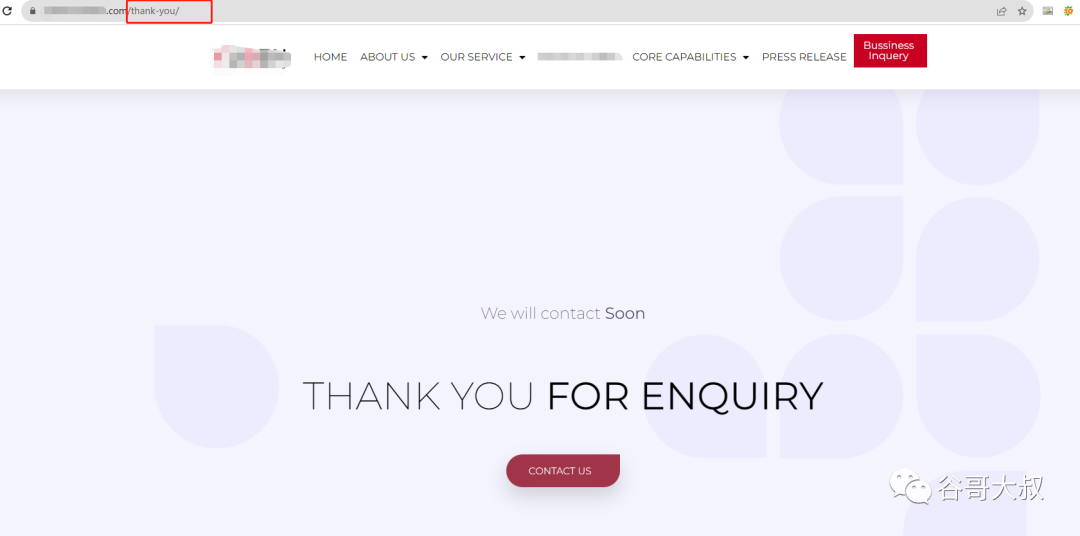 通常我们会通过追踪客户提交完询盘跳转到thank-you 页面的网址来衡量我们的转化效果,thank-you页面加载的次数就是我们追踪到的转化次数