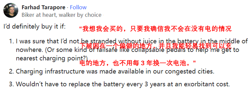 续航和充电顾虑 | 图片截取自 reddit
