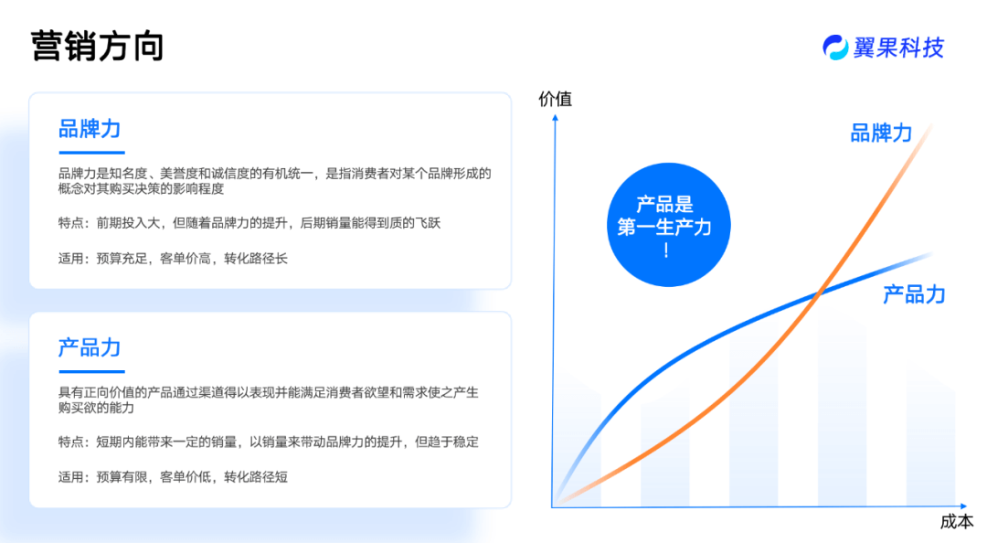 网站的营销路线一般分为2个方向:品牌力驱动路线和产品力驱动路线,不同的营销方向所对应的特点和适用的情况都不一样。