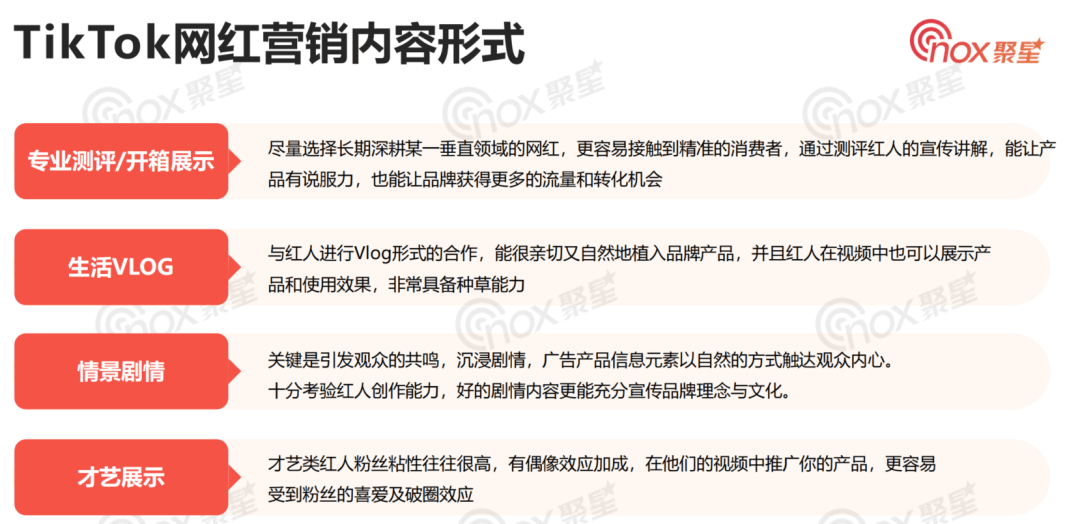 Nox聚星通过对品牌推广目标以及品牌产品的调查了解后,确定了主要的网红营销策略: