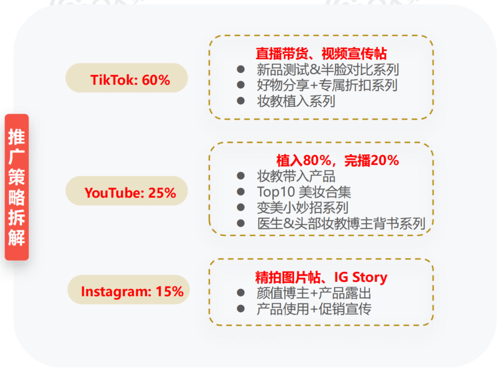 在平台选择方面,虽然是3平台同时推广,但明显可以看出TikTok的投入占比是最大的。目前,美妆产品在东南亚地区非常受欢迎,转化率也非常可观。因此在TikTok上,Nox聚星选择了直播带货以及视频宣传帖的形式,以新品测试、好物分享、妆教植入等等内容形式获得非常好的转化效果。