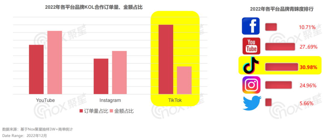 而与其相对,TikTok成单金额相对YouTube、Instagram而言相对较低,加上短视频所带来的大量流量,TikTok已经因其的高性价比成为2022年众多品牌青睐的平台。