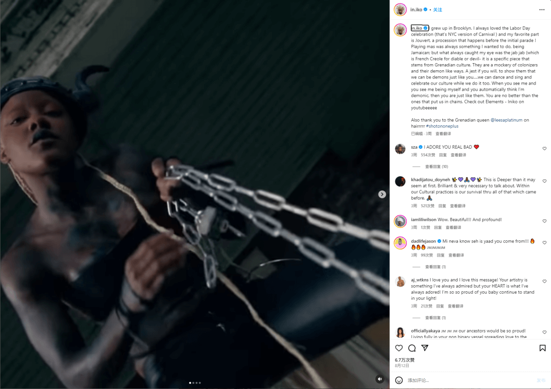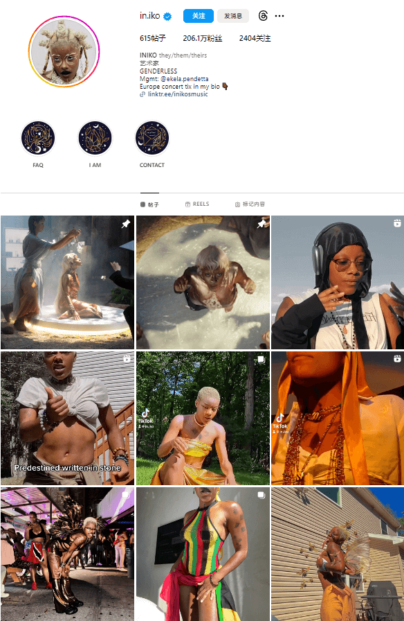 尽管她是一名歌手,但是却更像是一个社媒红人。目前,她在Instagram上拥有206.1万名粉丝,整个账号的内容构成以日常生活、艺术拍摄以及演出摘录为主,同时伴随着并不频繁的作品宣发、以及一些商业活动。