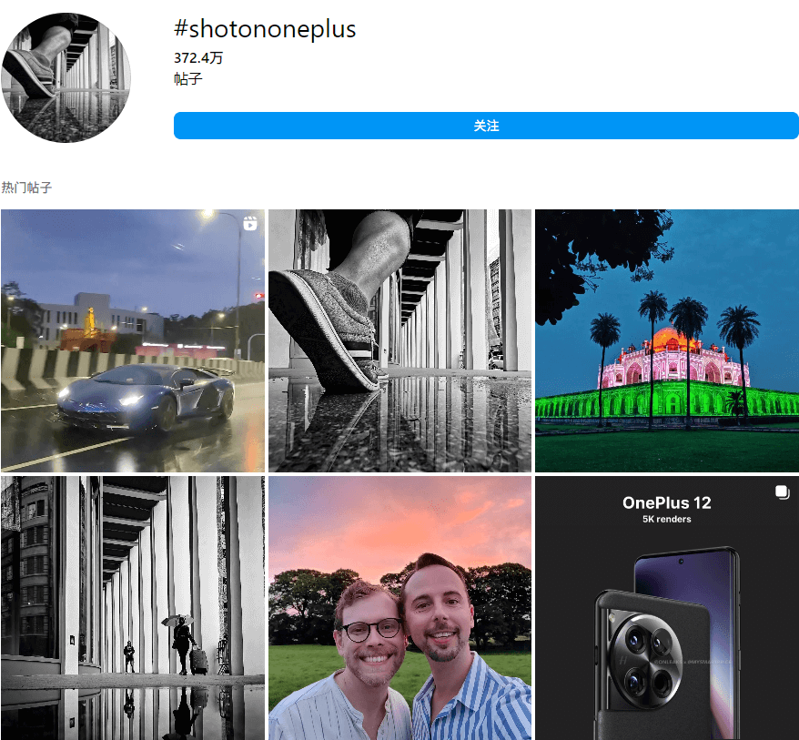 就这样,一加通过#shotononeplus标签和自身的官方背书巧妙地完成了“用户吸引-社交激励-深度参与”的正向循环,而且没有付费推广。目前,该标签下的帖文数量已经达到了372.4万条,非常不错。