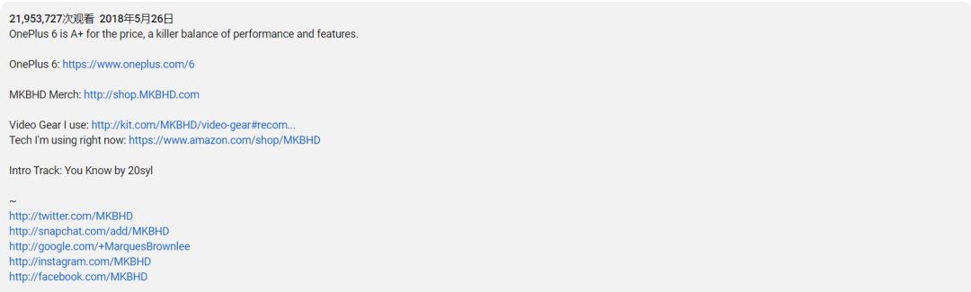 此外,Marques Brownlee还在视频正文处添加了Oneplus6的官网购买链接,这种措施缩短了用户的转化路径,为一加的海外销量提供了巨大的帮助。