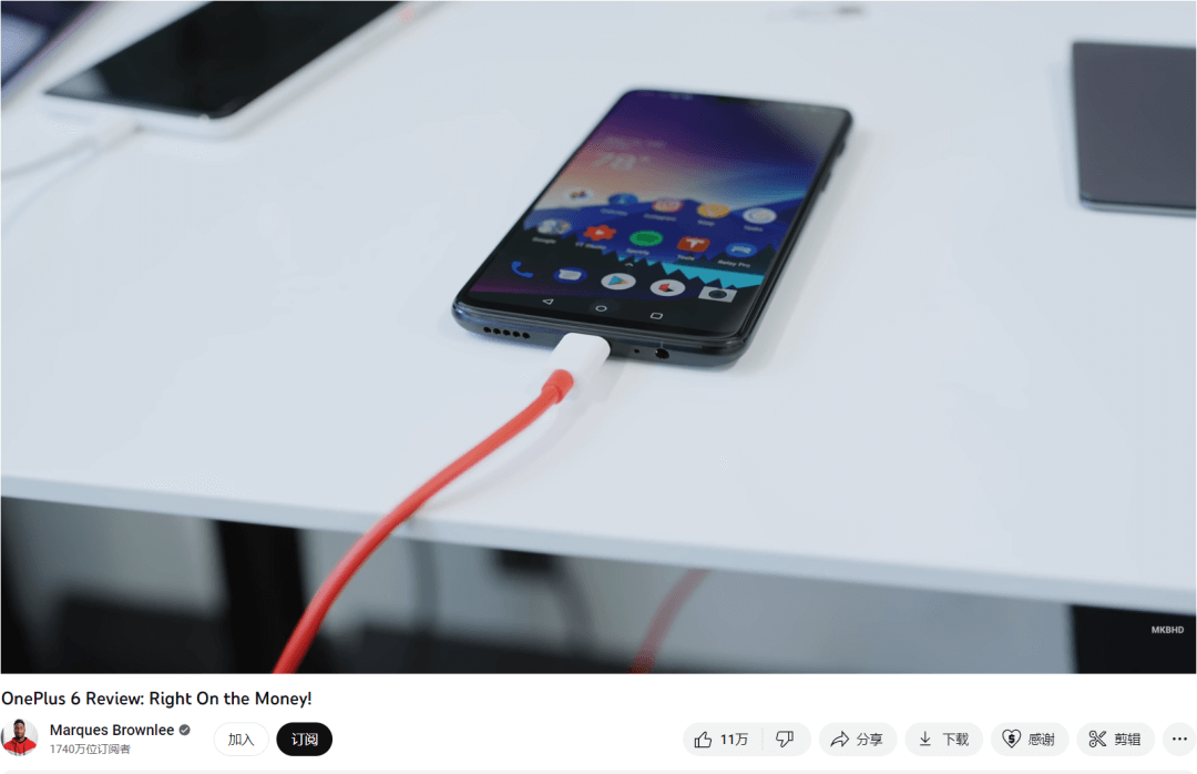 Marques Brownlee先是自己实际深度体验了两周Oneplus6,然后通过一期时长12分钟左右的视频真实地向粉丝和外界告知了自己的使用感受,最终评价为——“Right On the Money!(物超所值)”。而这四个单词也成为了该条合作视频的名称。