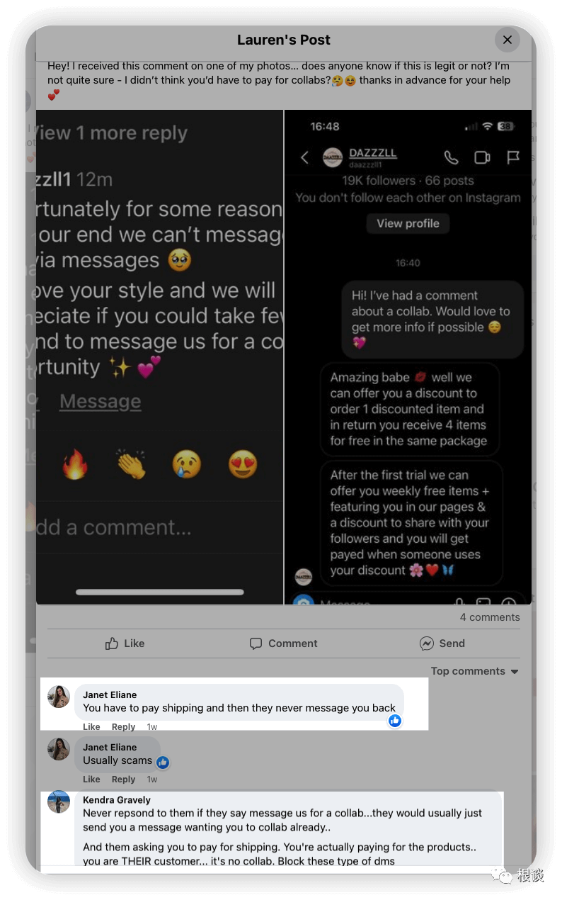 3. 如果通过品牌自己的Instagrams私信,但是粉丝较少也可能不靠谱