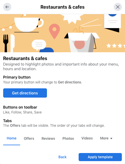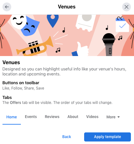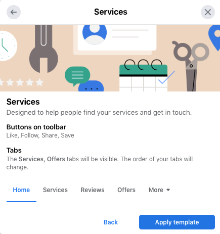 如果您有权访问 Facebook 页面模板,这些预设布局可以帮助您定制页面以满足您独特的业务需求。