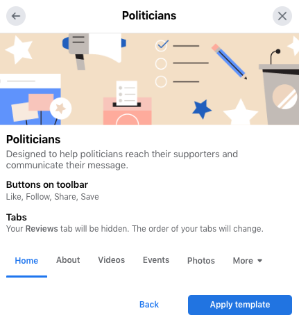 也许你正在竞选公职。也许你已经赢了。无论哪种方式,政客 Facebook 页面模板都可以帮助您接触支持者并分享您的平台。