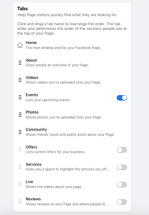 请记住,您仍然可以从 Facebook 页面布局中删除不使用的选项卡。该模板只是创建您自己的 Facebook 页面的起点。