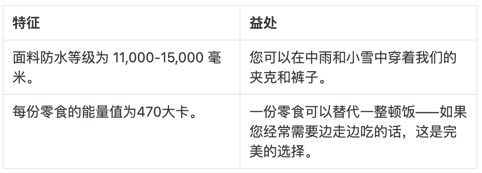 思考产品的哪些功能对目标受众有吸引力,然后描述每个功能的优势:您的产品解决什么问题?它如何改变用户的日常生活?它将如何帮助他们?