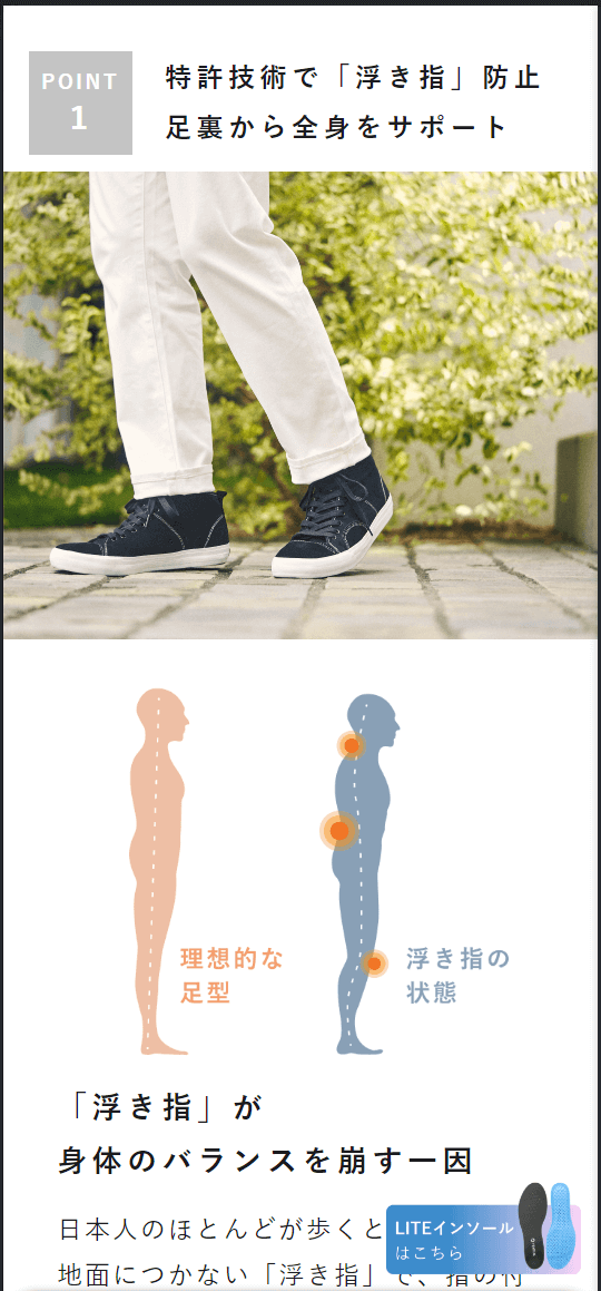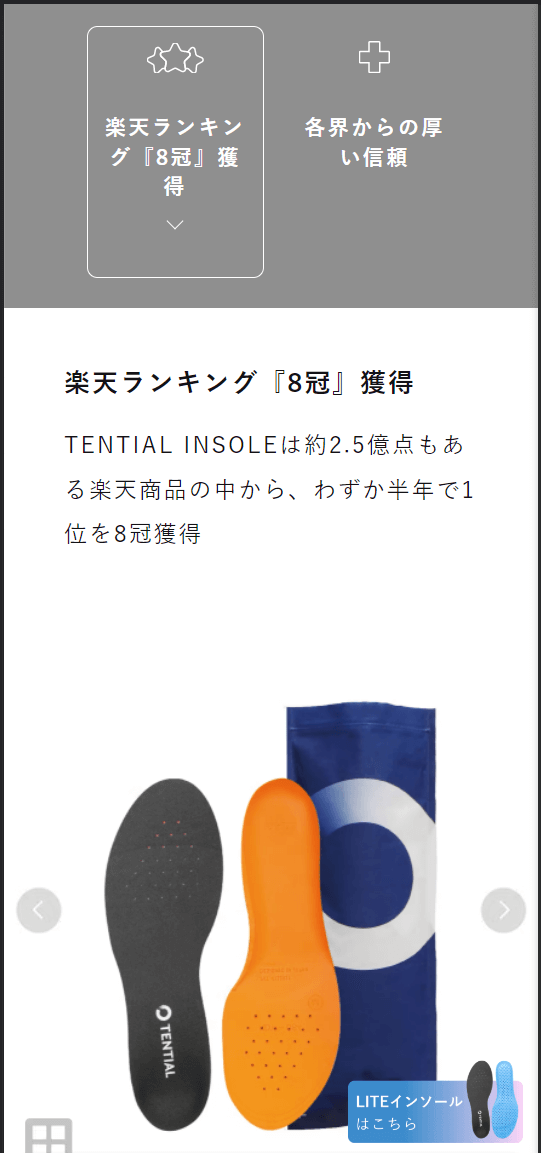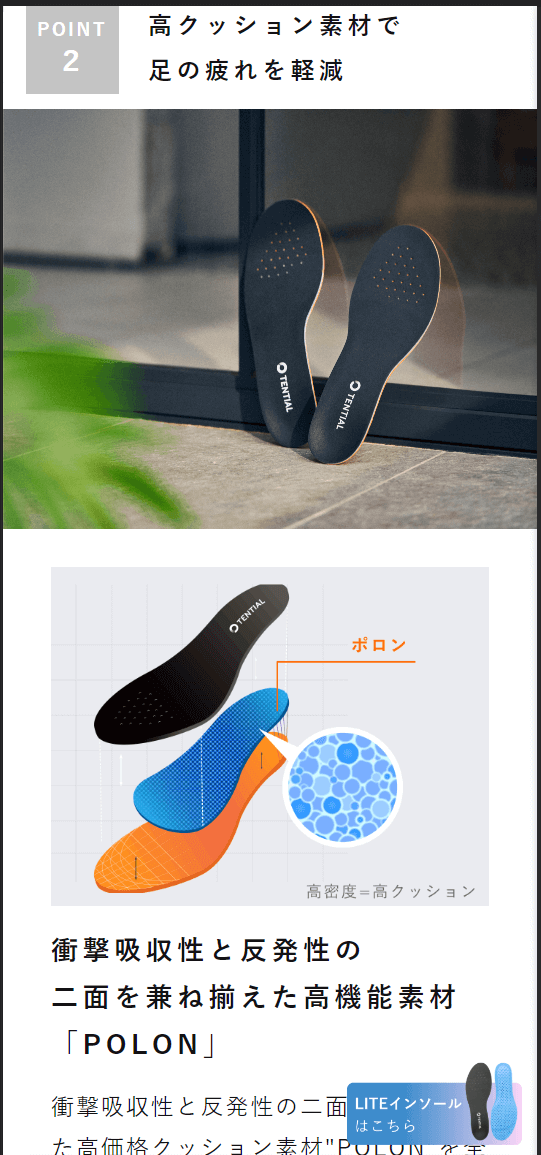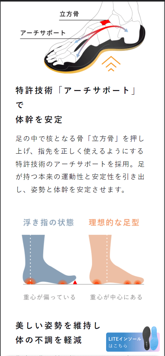 ✅ 将人工工学拆解成为3个重点(技术专利、高弹力素材制作的足弓支撑、裁剪形状适用于各种不同的鞋子)
