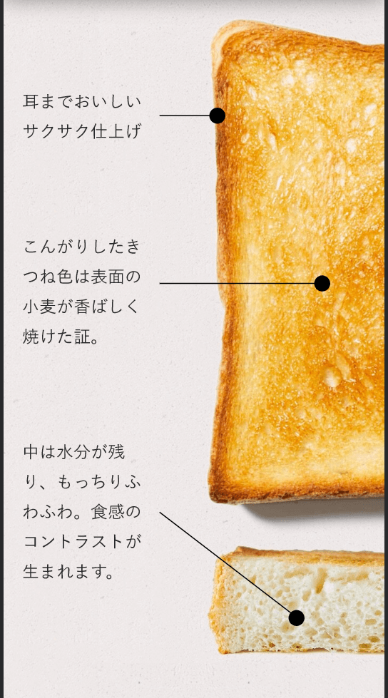 关于何为令人感动的吐司的解说。不同位置烤制程度,含水量不一样。