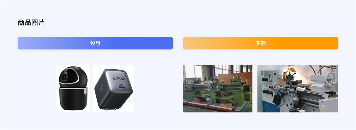 独立站一大亮点在于高质量商品图片,作为设计师当然会设想商家能提供下图左边的图片。但放到实际场景下商家提供的图片质量和效果都不可控,往往是提供的图片右边这样。