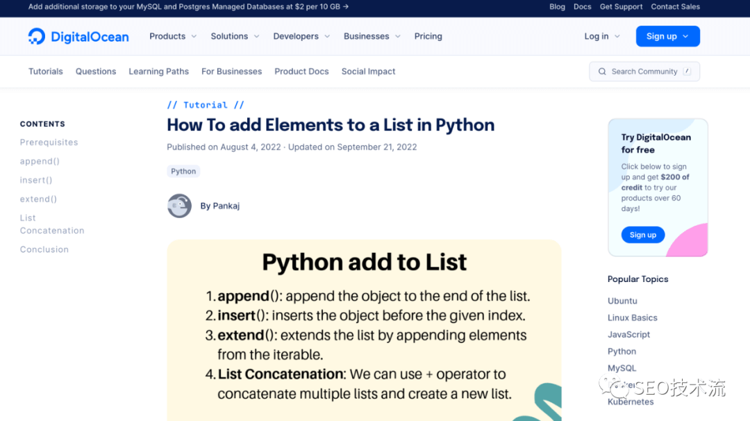 我能想到的就是** Amazon 的整个网站框架、DigitalOcean 的各种技术文档**,比如这个 https://www.digitalocean.com/community/tutorials/python-add-to-list 。