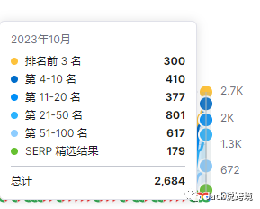 9月份时出词刚过2K(9月结束!SEO站点出词破2K-周六有个直播大家可以来听)目前已经快2.7K。最主要的是,排名前3的词已经有300个了,排在第一页的词已经破400个了。其实真正能获取到比较多流量的词就是前三,前十的关键词。后面的词很多曝光居多,真正的流量并不多。除了出词量,更应该关注能有效获取流量的第一页和前三名的关键词。