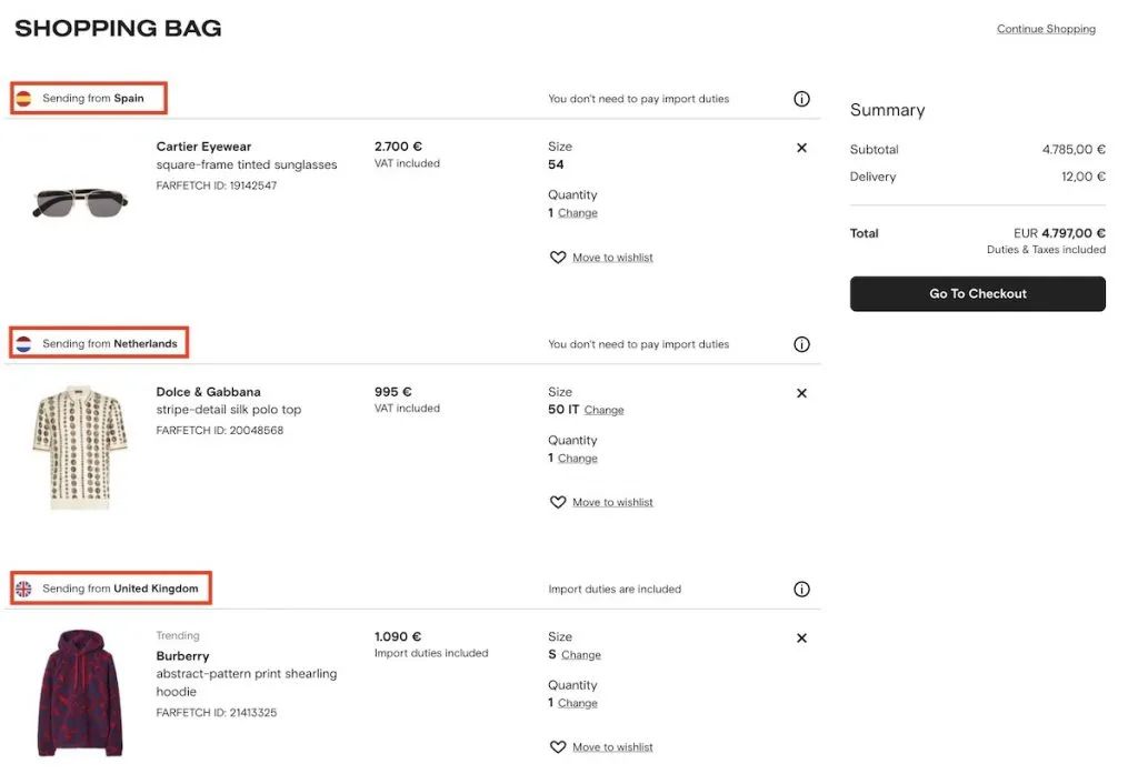 - 无缝多精品店结账: 在其他平台,从多个卖家购买商品可能会很繁琐。但Farfetch引入了无缝结账流程。这意味着用户可以在单笔交易中直接下单多家精品店的商品。