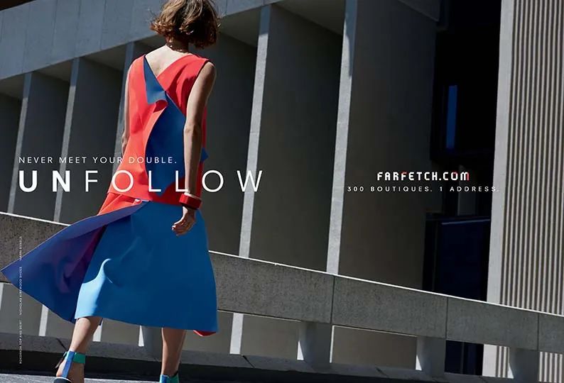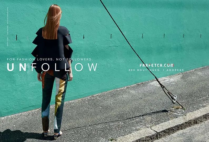 “取消关注”活动以“300家精品店,1个地址”作为开场白。在印刷品、户外和线上传播,旨在展示精通时尚的Farfetch消费者的个性和风格。