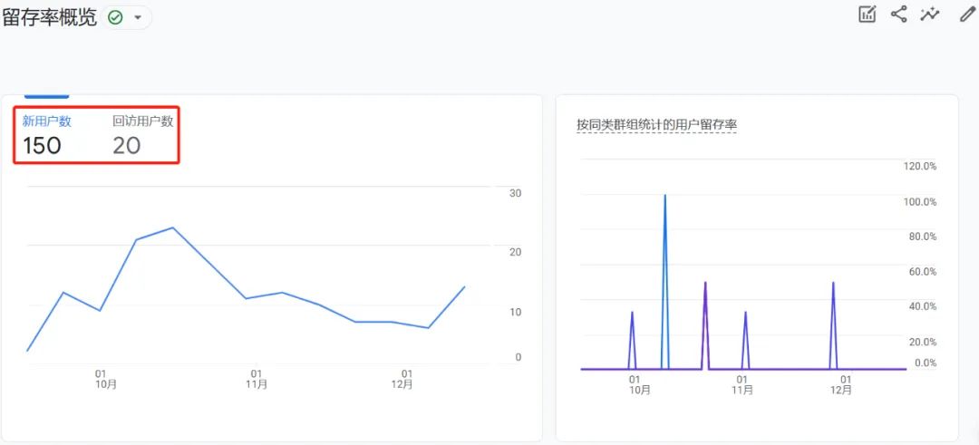一般来说,良好的留存率约为 30%,如果低于这个数值,那么网站将无法给访客留下持久的印象。