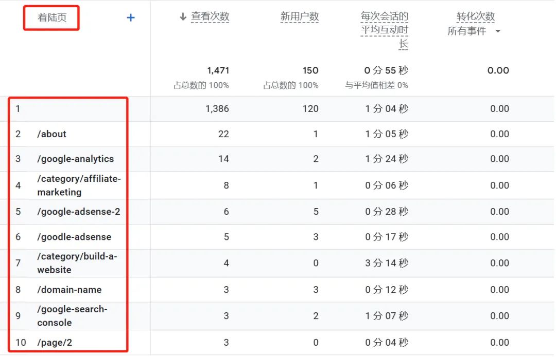 这个指标表示访客进入网站最先看到的页面,通常会是首页或重要内容的页面。