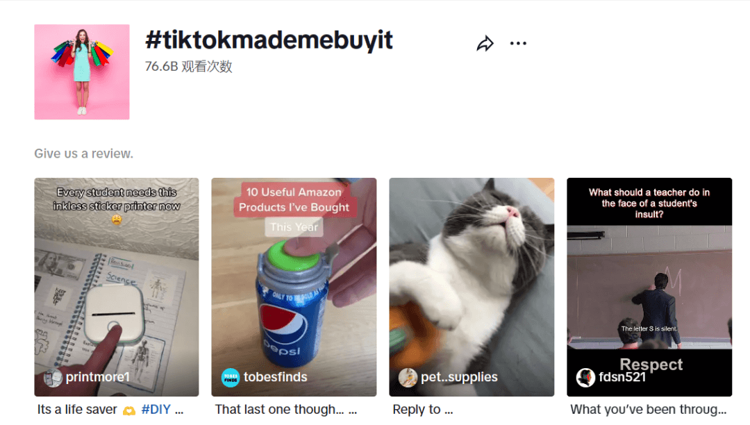 事实上,TikTok已经成为不少海外消费者获取购物灵感的重要渠道。不少用户将自己种草的小商品拍成视频传至TikTok与网友分享,相关的 #tiktokmademebuyit 标签下,各种展示新奇特好物的短视频已经吸引了超过760亿次的观看次数,而黑五购物 #blackfridaydeals 标签下的视频观看量已经超过14亿。