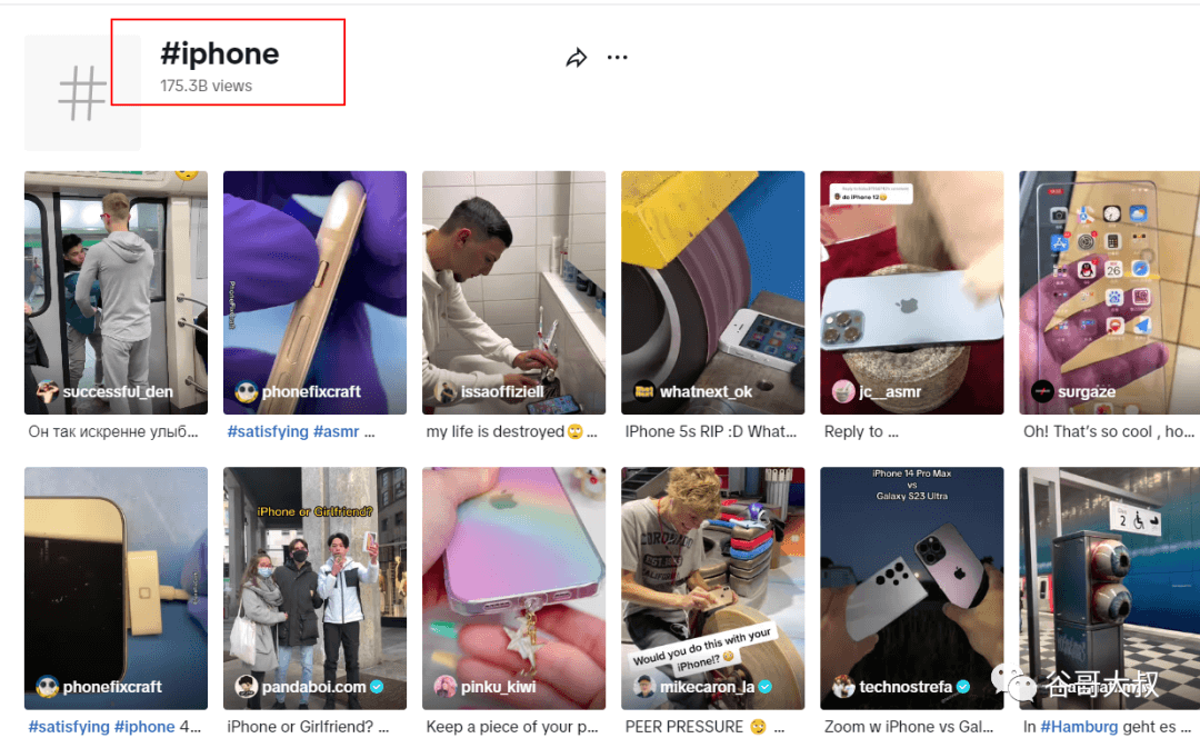 还可以借助刚刚筛出来的视频发现更多的标签,比如,如果产品和苹果手机有关,那又可以发现#iphone, #apple等类似有用的词,点击这些标签发现更多的网红。依此类推,没有穷尽。
