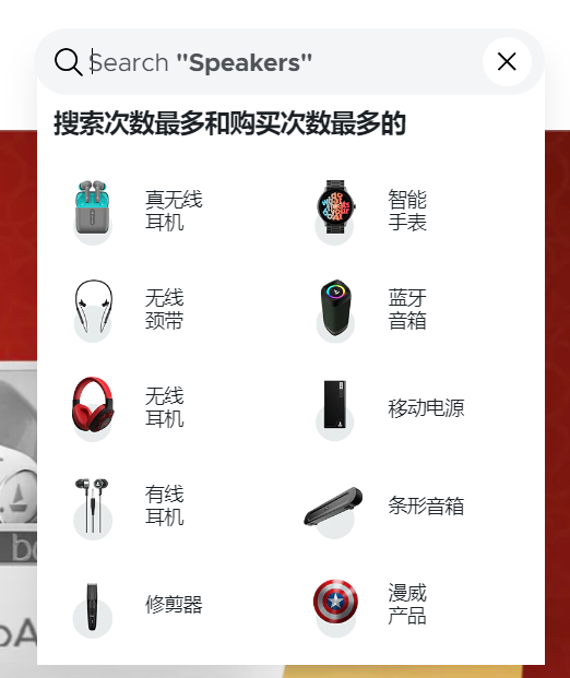 第二是搜索框,用户可以在搜索框中显示搜索次数最多和购买次数最多的品类,从而提升销售机会;