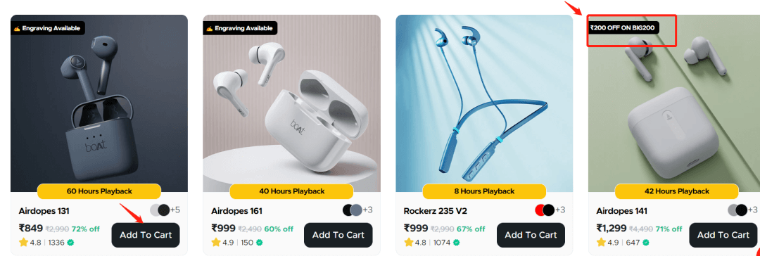 从整体的网站购物体验来说,boAt确实在产品页面和交互设计方面做得不错。