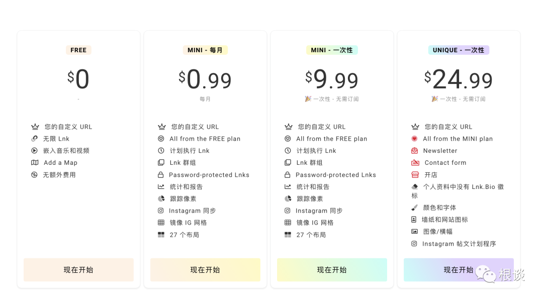 大部分Bio-Link工具走的都是SaaS订阅模式,有免费有限制使用,付费无限制使用以及个性化功能两种版本,付费可以按照月/季度/年来订阅。