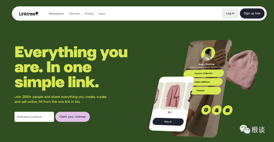 Link Tree是做Bio-Link短链的鼻祖,目前用户量应该也是最大的,最近看到他们跟TikTok有合作,支持生成TikTik专属的profile